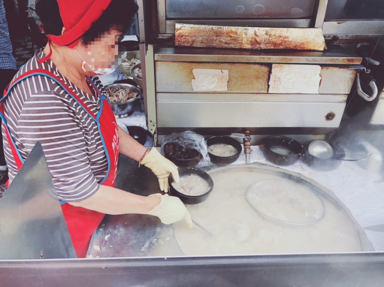 옮겨진 육수를 넣고 국밥 그릇에 다시 옮겨주신다.