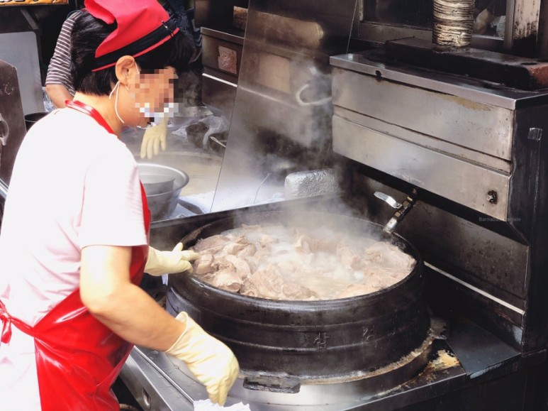 저 솥이 돼지국밥 육수의 비밀인 것 같다.