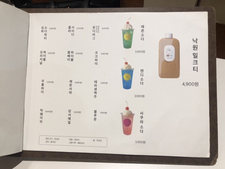 음료는 밀크티 를 필두로 소다 나 하이볼 등이 있다.
