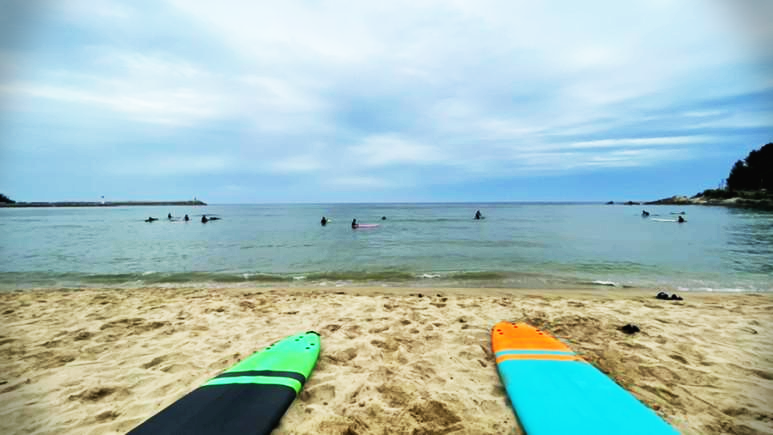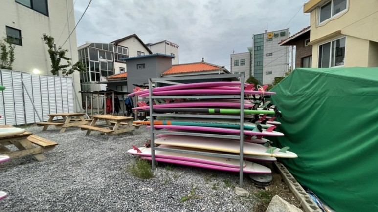 오늘 서핑할 곳은 파머스키친에서 걸어서 한 15분 정도의 거리. 죽도해변에 위치했다.
