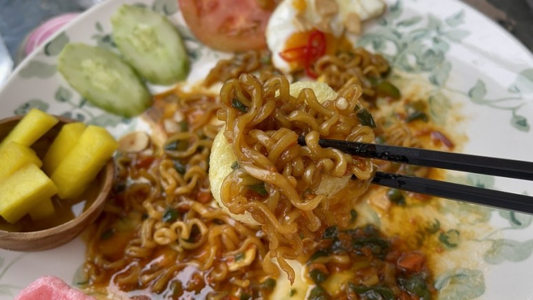 면도 잘 익히고 저 알새우칩과 계란 반숙하고 먹으면