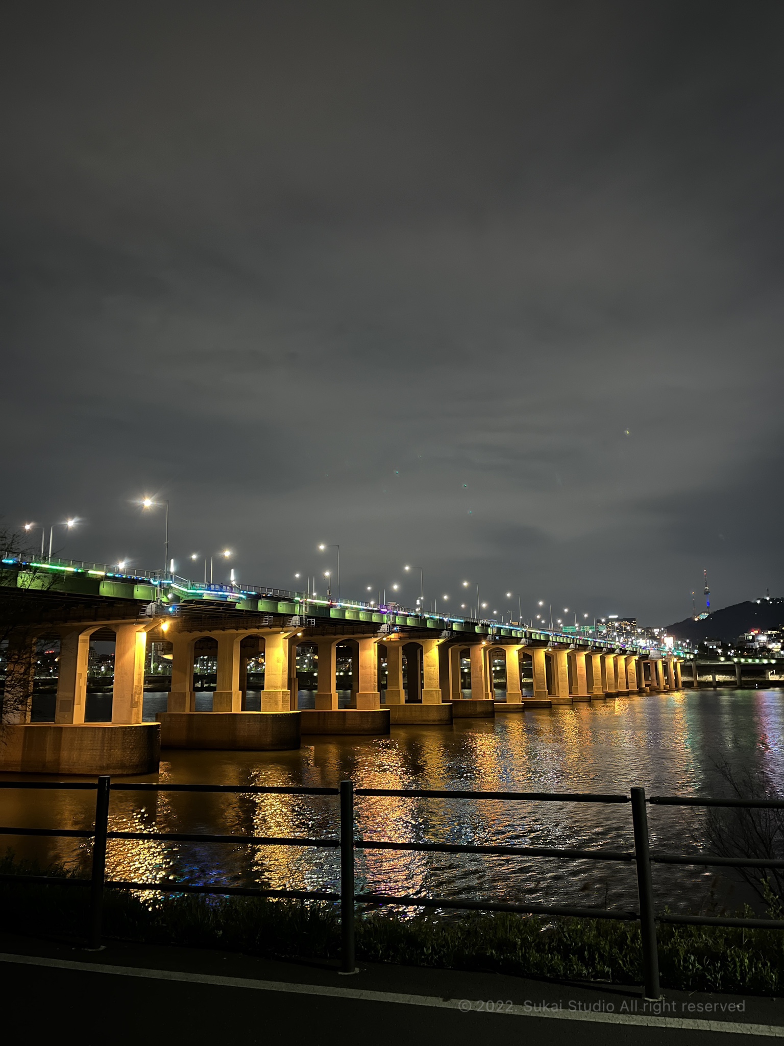서울 어느 곳에 이렇게 물 위에서 이렇게 다리 야경을 볼 수 있을까 싶네. (많을지도)