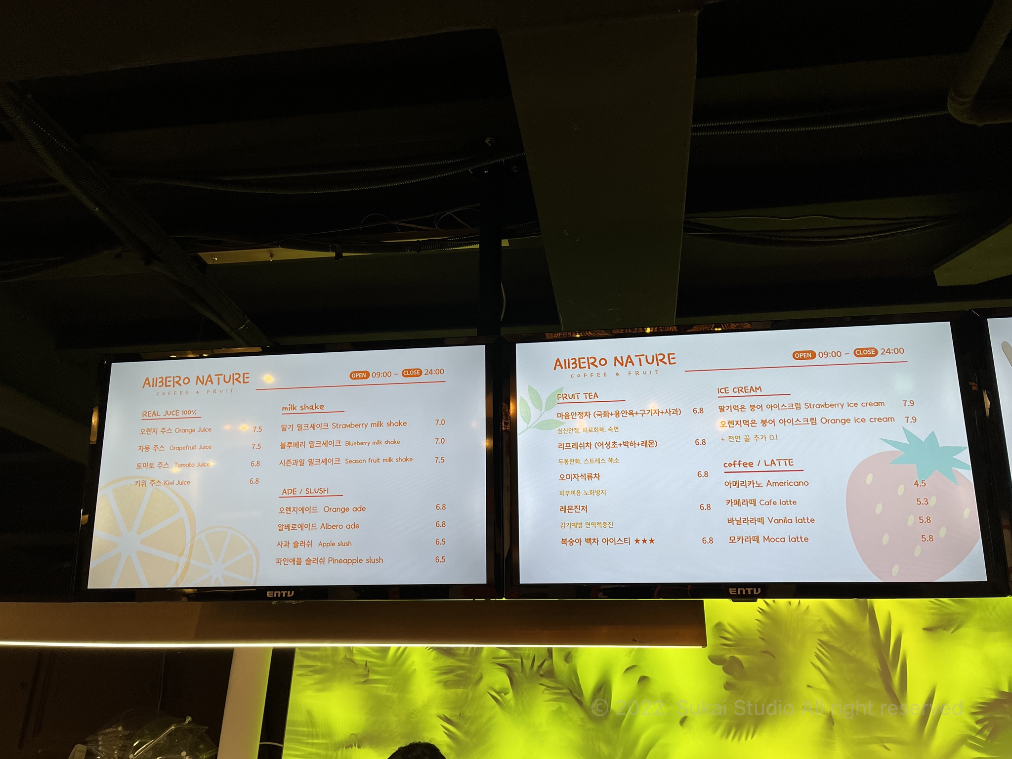 (메뉴판에 있는 것 말고도 냉장고에 일반 음료수도 있다.)