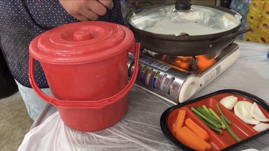 냄비 안에서도 새우가 팔딱팔딱 뛰어서 뚜껑을 잘 잡아줘야 합니다.