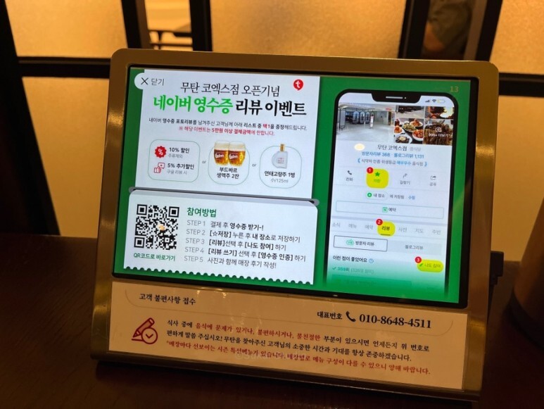 직원분에게 리뷰를 쓴다고 하면 영수증을 주시는데 그걸로 리뷰를 작성하면 된다.