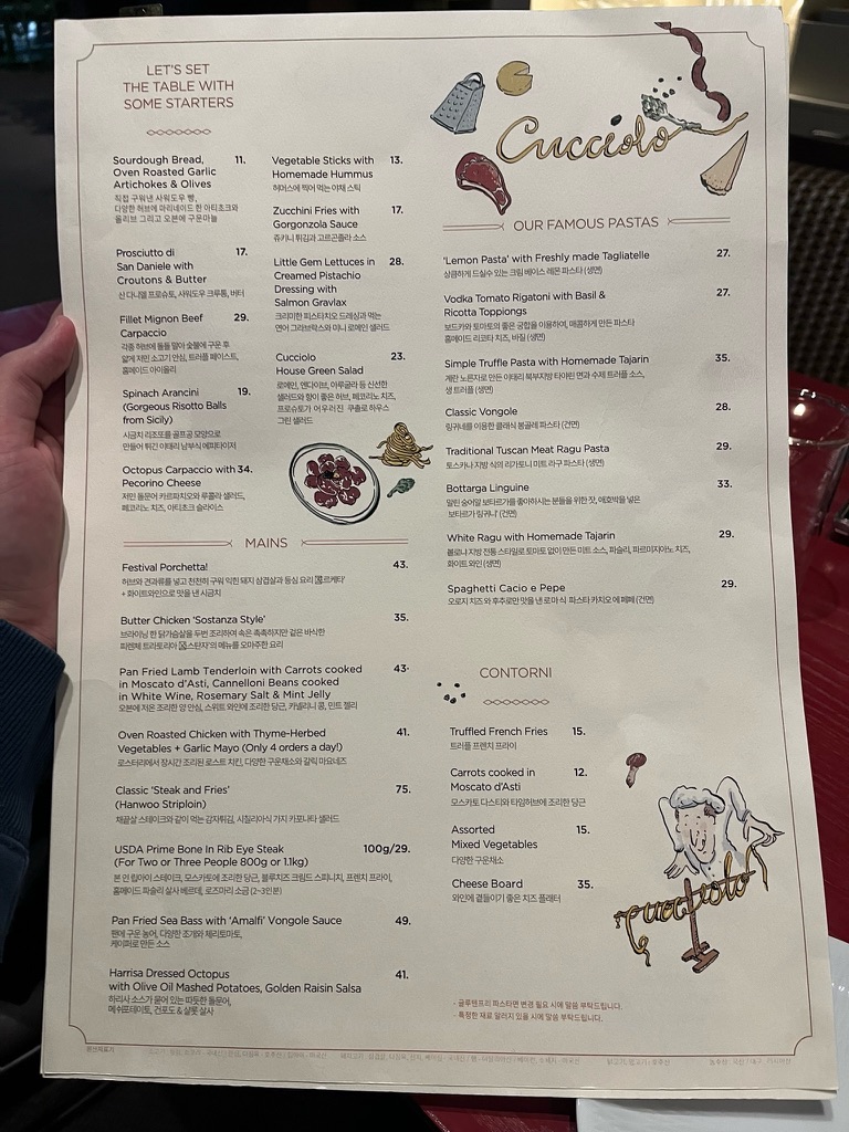 진짜 수많은 양식 메뉴와 와인 메뉴가 있었는데 아쉽게도 차를 가지고 와서 못 마셨어요.