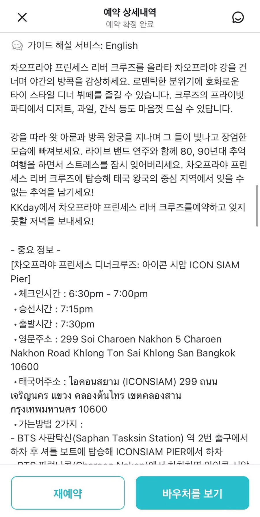 아이콘 시암에서 출발하는 크루즈를 예약했구요.