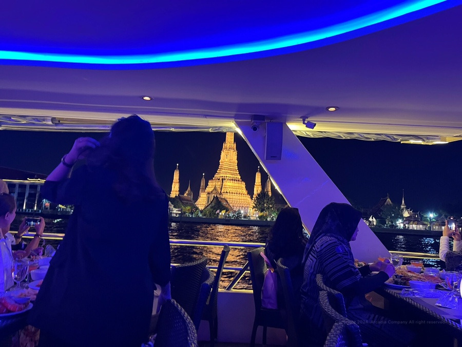 방콕의 한강인 차오프라야강에서 크루즈를 타면서 저녁을 먹는 일정이에요.