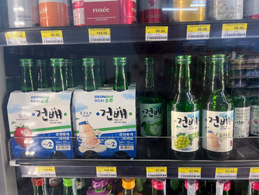 진로 소주가 방콕돈으로 149 바트.