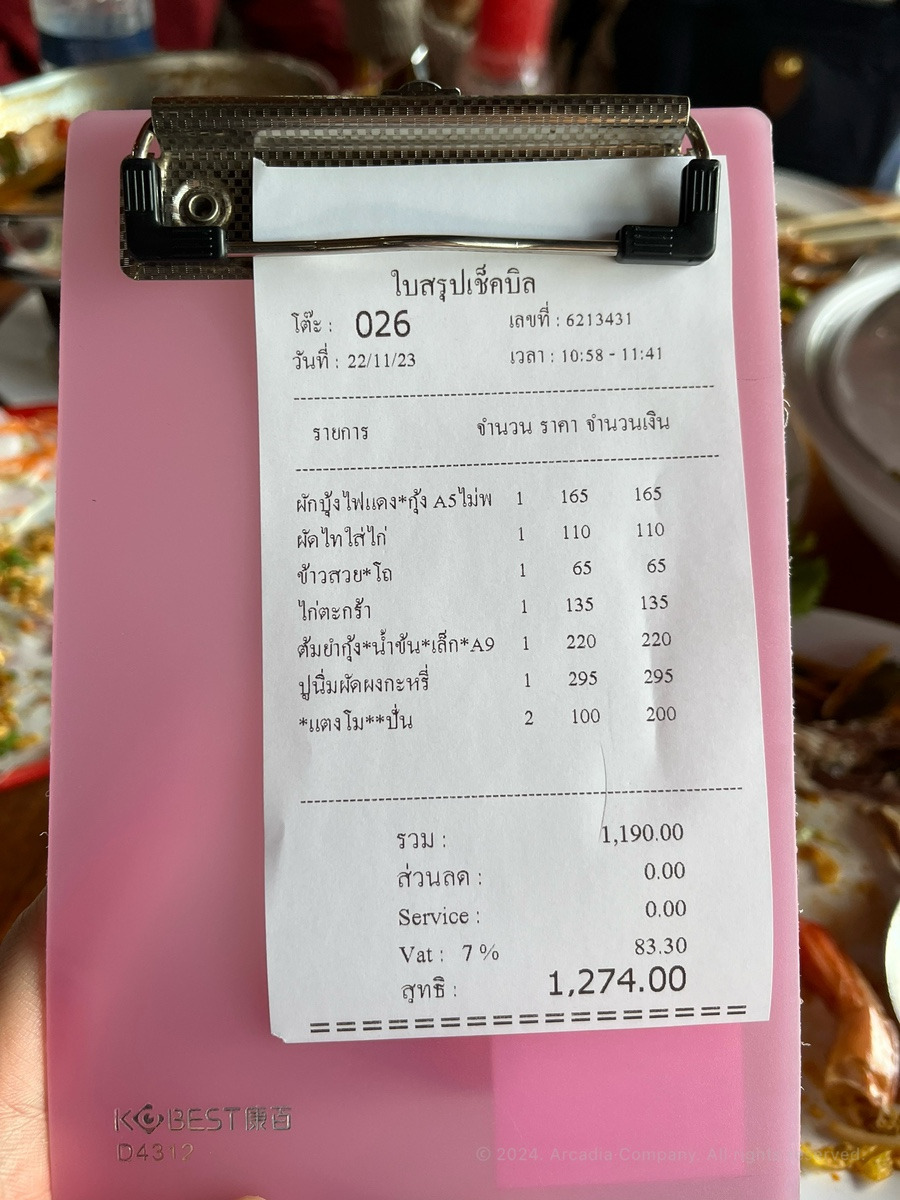 1,274 바트가 나왔는데 약 5만원 정도?
