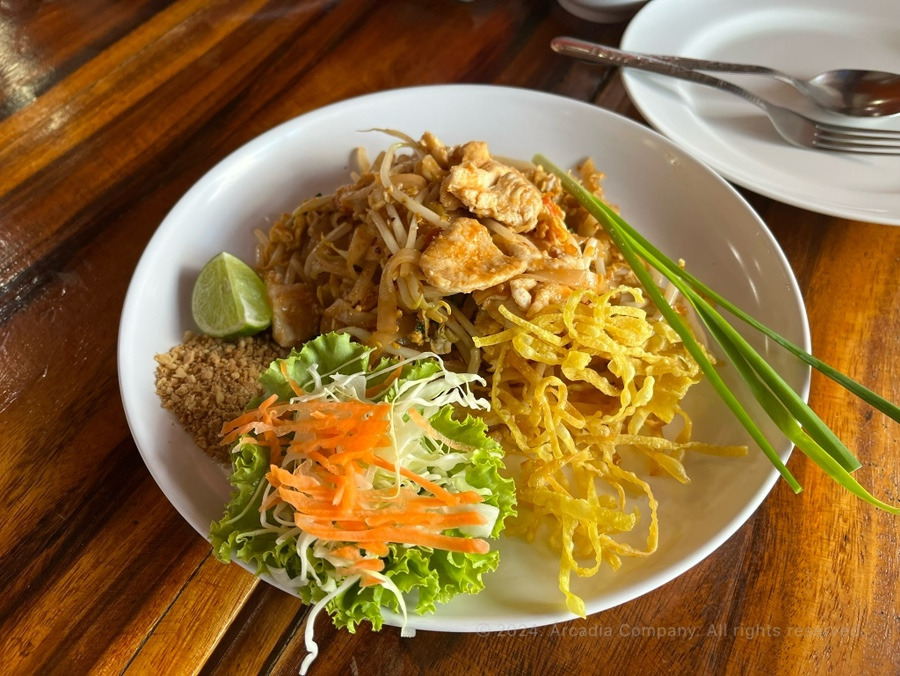 제일 먼저 나온 건 치킨 팟타이 (ผัดไทใส่ไก่) 135바트